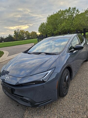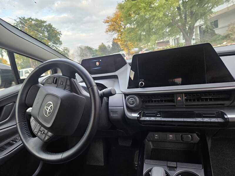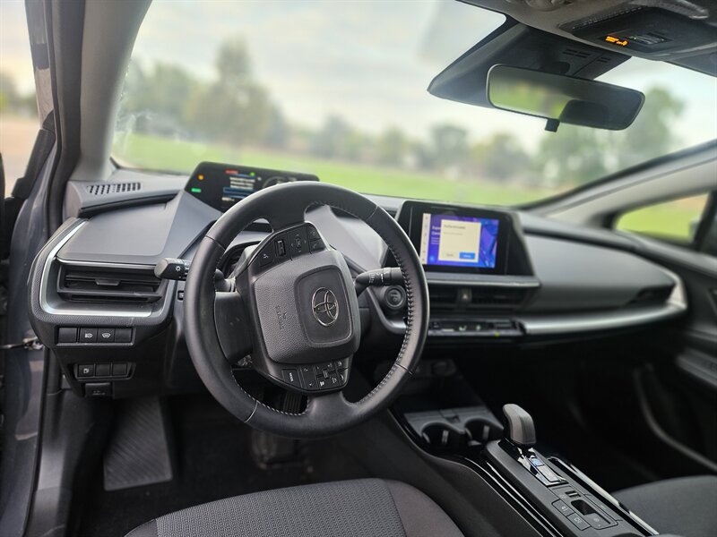 Discover the 2023 Toyota Prius LE, an efficient hybrid vehicle that combines performance with sustainability. Powered by a 2.0L Hybrid I4 engine, it delivers 194 horsepower, ensuring a responsive driving experience. The striking Guardian Gray exterior is complemented by a sleek Gradient Black interior, creating a modern and stylish aesthetic. With only 6,000 miles on the odometer, averaging less than 2,000 miles per year, this Prius is in excellent overall condition. Enjoy impressive fuel efficiency, achieving 57 MPG in the city and 56 MPG on the highway. Standard features include a 7-inch touchscreen display, Apple CarPlay and Android Auto compatibility, adaptive cruise control, and Toyota Safety Sense suite, providing advanced safety and convenience for every journey.